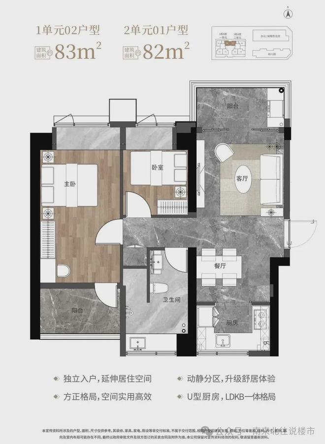 南北双阳台,房间功能齐全,比较实用,居住舒适,适合情侣或者人口不多的家庭。